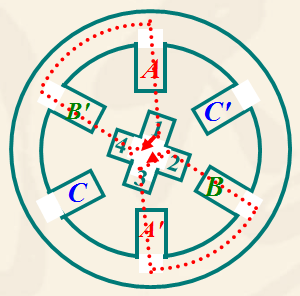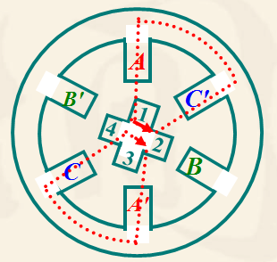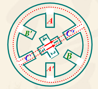 (1)BB' 磁場對 2、4 齒有磁拉力,該拉力使轉子順時針方向轉動。