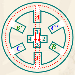 A 相通電使轉子1、3齒和 AA' 對齊。